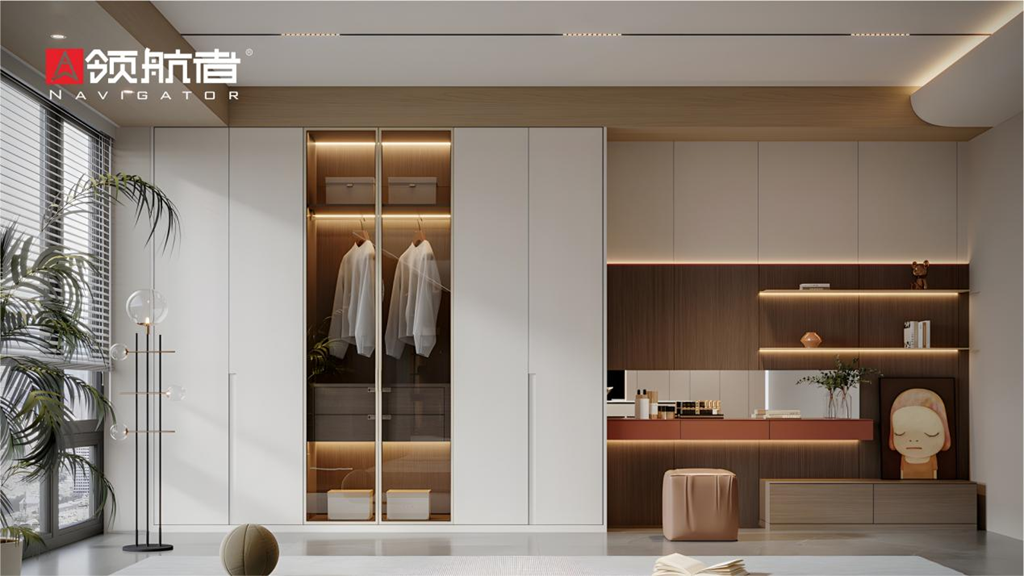 將軍牌生態(tài)板精選優(yōu)質原木基材,每一塊板材的紋理都如同大自然的杰作,獨一無二。匠心工藝完美復刻木材天然肌理,讓冰冷的建材煥發(fā)生命力。主臥空間中,簡約的設計搭配原木色生態(tài)板,儲物功能與美學表達和諧統一,展現對品質生活的極致追求。